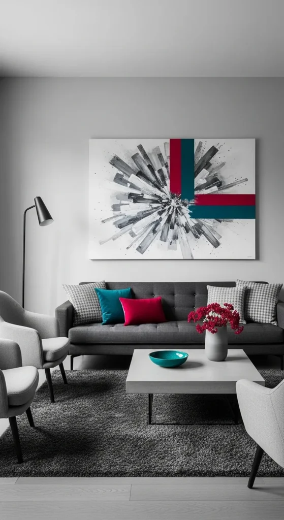 A monochrome living room in black, white, or shades of gray remains a sophisticated and timeless choice for apartment design in 2026. The simplicity of a monochromatic palette creates a clean and elegant foundation for the space. To add interest and depth, incorporate a single bold accent color, such as teal, crimson, or mustard, through throw pillows, a statement rug, or a bold piece of artwork.