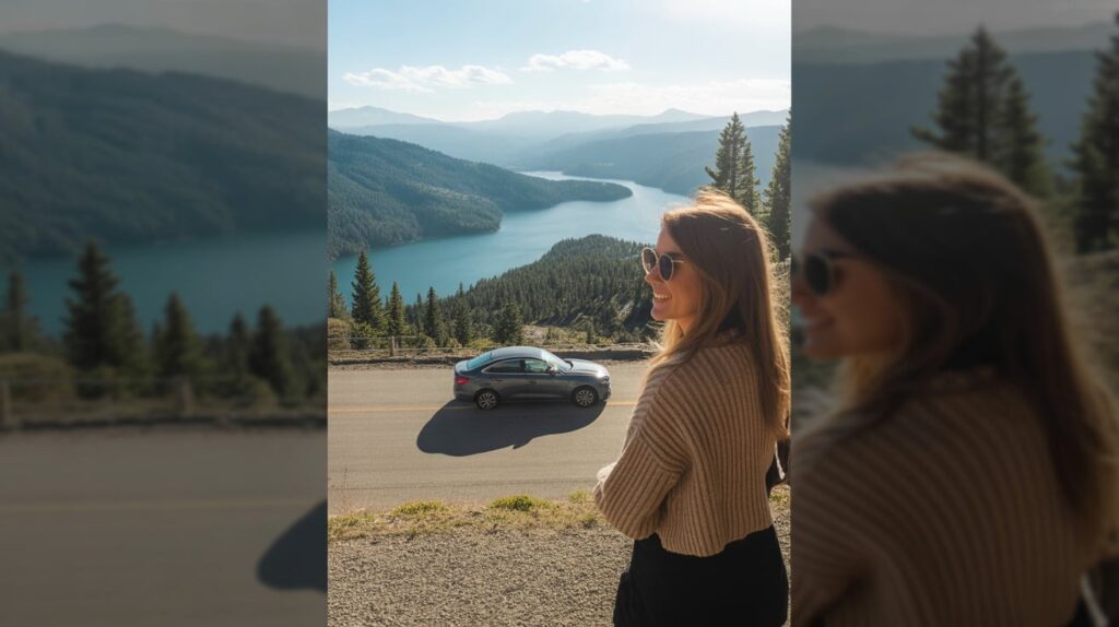 The south shore has multiple quick viewpoints where you can stop for a photo, then continue the loop without losing time. These short pullout-style stops help you collect strong lake images even when your weekend schedule is full. They also work well for outfit photos because you can step out, shoot for five minutes, then move on. This keeps the day efficient while still giving you content that looks planned.