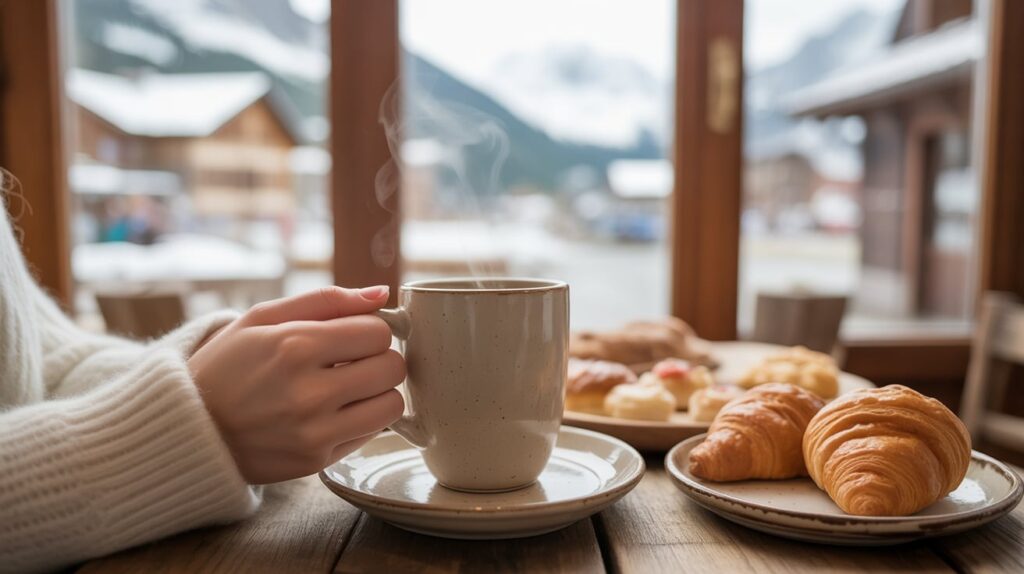 End or begin a loop with a simple coffee-and-treat stop in the Village. This adds warmth and routine to a travel weekend, which helps your itinerary feel realistic and repeatable. It’s also strong Pinterest content because it blends lifestyle with location—coffee, cozy layers, and a mountain-town backdrop. This stop works across seasons and helps you slow down after high-energy activities like hiking or rides.