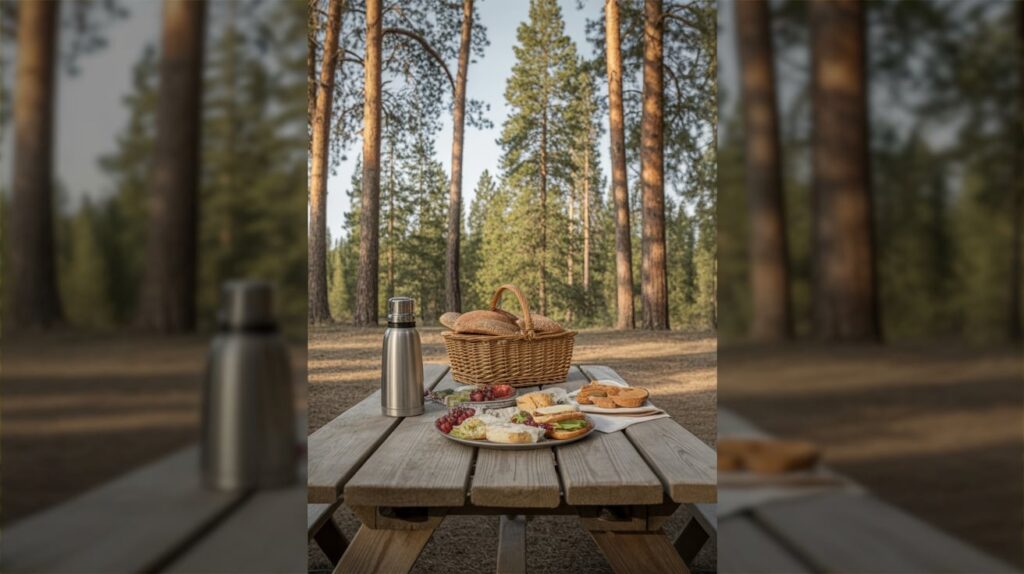 A lakefront picnic is a simple stop that makes your weekend loop feel slower and more intentional. Big Bear has shoreline parks and open grassy areas where you can sit with the lake in front of you and mountains behind. This creates a “weekend escape” look that performs well on Pinterest because it’s relatable and easy to copy. It also helps you rest between more active stops like hiking or biking.