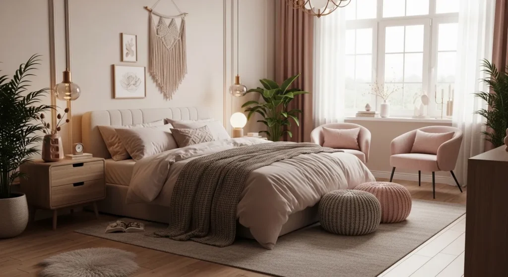 Soft Pink and Warm Beige for a Romantic Bedroom