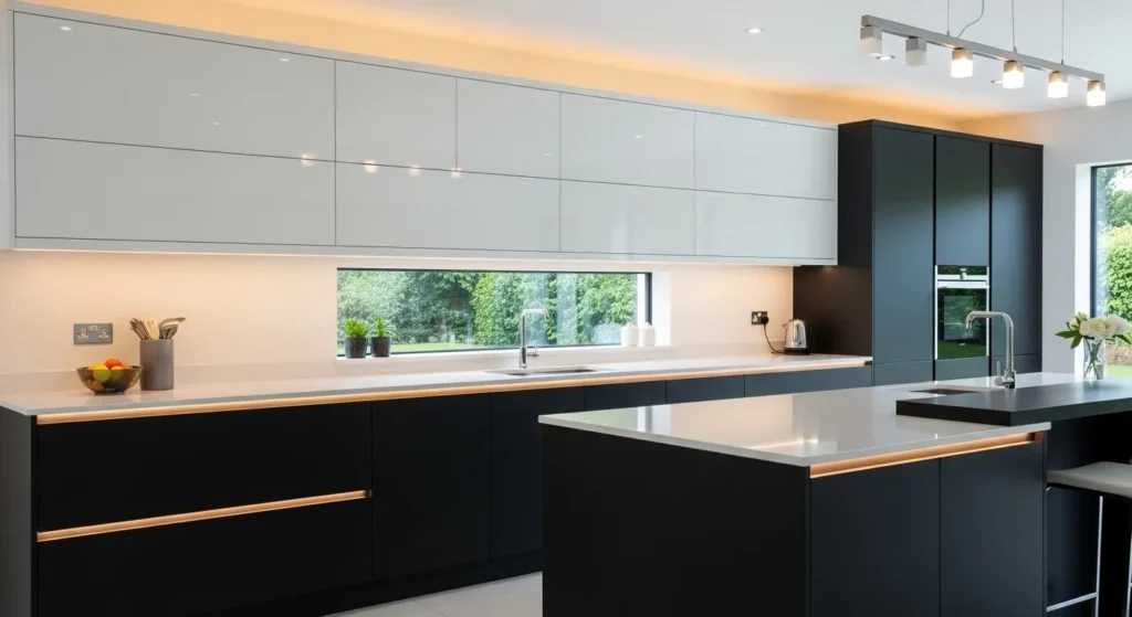 Integrated lighting systems are key in modern kitchen designs, enhancing both aesthetics and functionality. Recessed lighting, under-cabinet LED strips, and concealed lighting elements offer a smooth, sleek appearance. The lighting can be customized for brightness and ambiance, providing everything from task lighting to mood-enhancing effects.