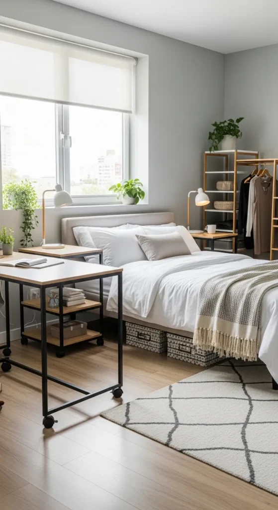 With the ability to move furniture around, you can adapt the room to different activities or guests, ensuring that every inch of space is optimized. These portable pieces are also easy to store when not in use, keeping the room feeling open and spacious. This trend combines function and style, allowing you to create a dynamic and adaptable small bedroom.